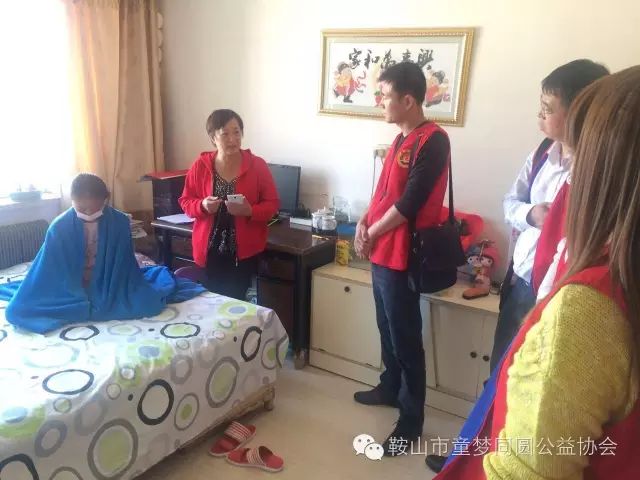 2016年9月20日上午,由鞍山市天添培训学校马校长把这条救助信息提供给童梦同圆办公室;在各位领导得到消息之后决定去孩子家进行走访调研。当日下午童梦同圆常务会长李春久(一组组长)组织本组会员去孩子家调研,并亲自出资为孩子带去水果。