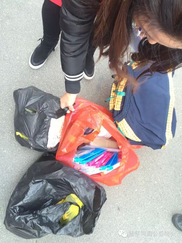 为孩子送去的衣物及文具等生活学习用品