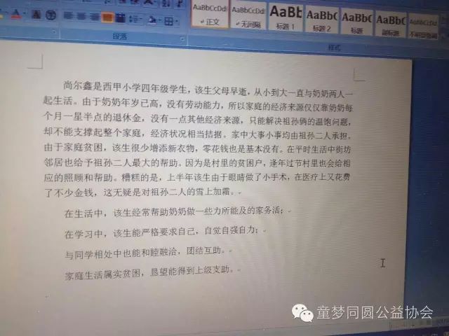 2、张宇彤,女,家住鞍山市海城县八里镇大新村,读小学六年级。父母离异,失踪,孩子跟爷爷一起生活,爷爷还有劳动能力,能够抚养孩子,不考虑资助。