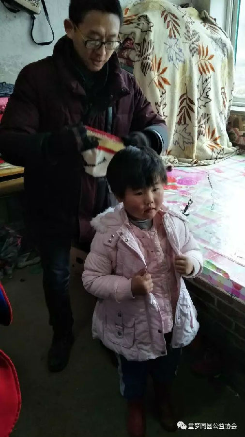 2016年11月19日,在鞍山市慈善总会秘书长韩岐山与鞍山市童梦同圆公益协会会长董俊丰的带领下,一行10余人共同来到岫岩县朝阳乡开展2017年度“阳光助学计划”前期调研活动。共走访调研24家贫困儿童家庭,为他们送去衣帽等生活用品。