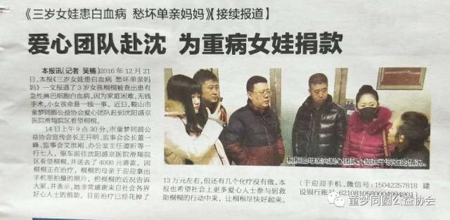 爱心团队赴沈 为重病女娃捐款