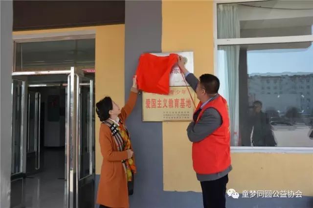 第三项:由市政协副主席(民盟鞍山市委主委)刘文彦与童梦同圆董俊丰会长为“阳光助学家园”揭匾