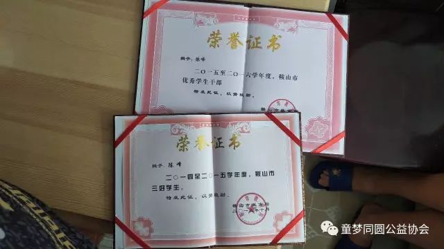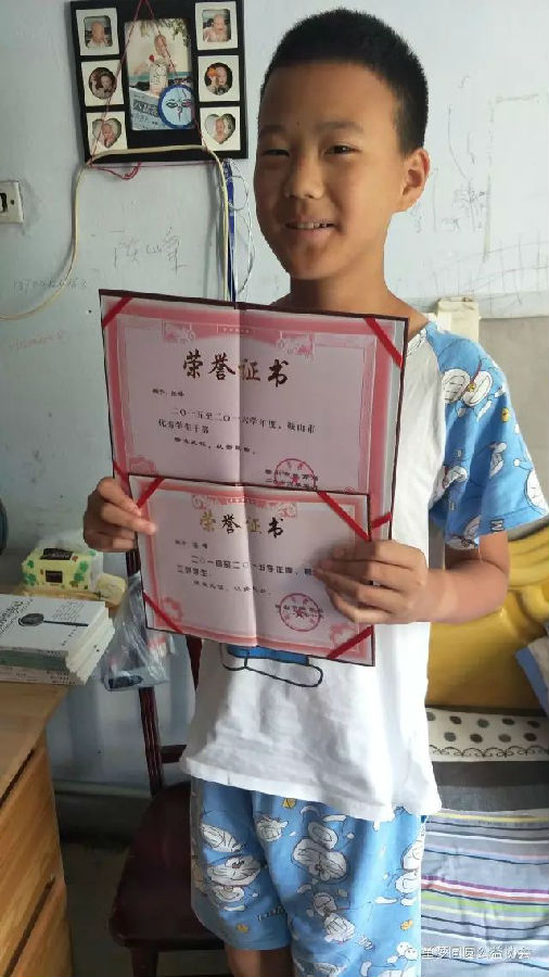 陈峰,男,13岁,今年7月毕业于长大小学,9月份升入华育中学,该生成绩优异(毕业考试年组第一名,升入初中分班考试大榜第七名),文明有礼,诚实善良;但是如此优异的孩子,却生活在一个经济状况不容乐观的家庭之中。