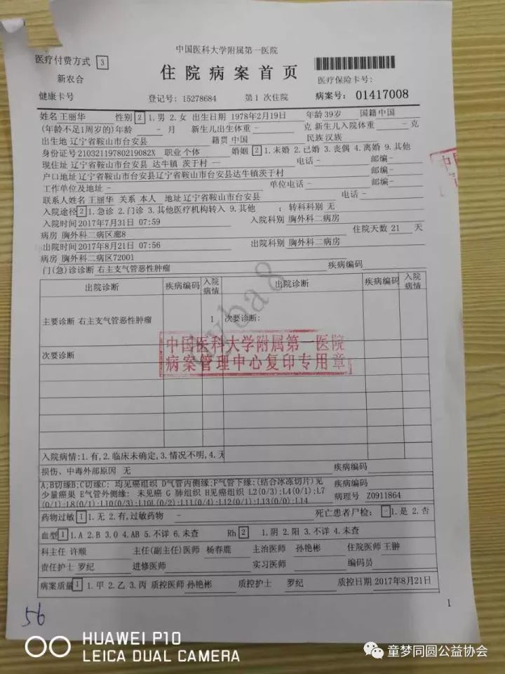 母亲:王丽华,孩子父亲去世后不久查出患有右主支气管恶性肿瘤,前不久刚做过手术,将肿瘤切除