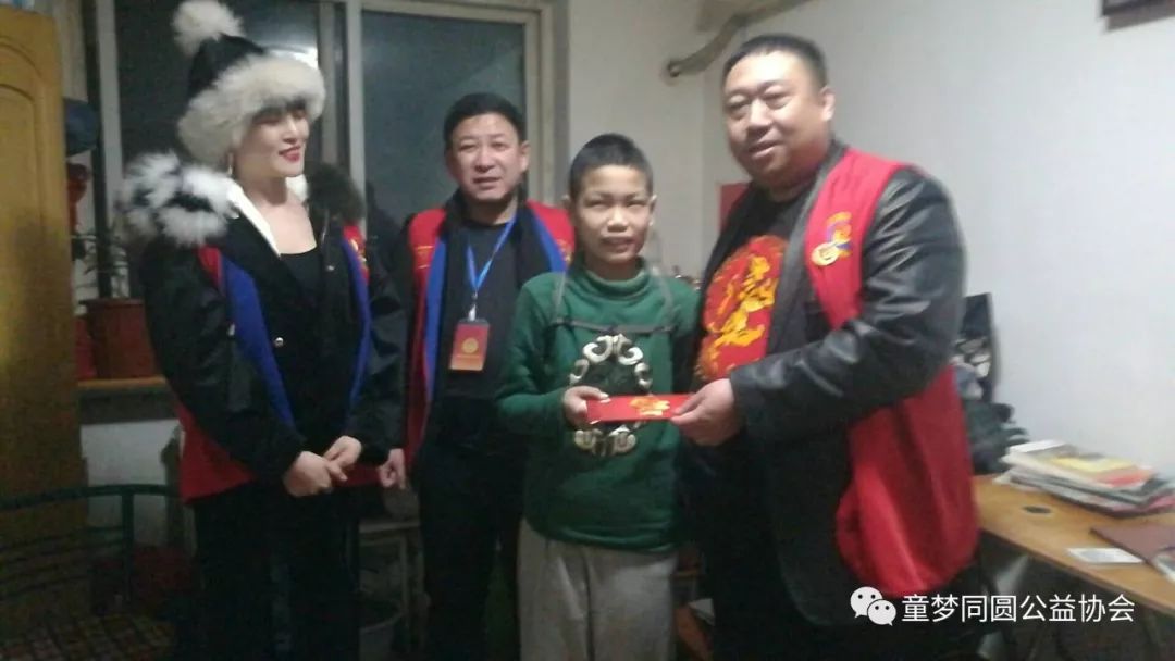 从岫岩返回鞍山,天色已晚,童梦同圆二分会部分会员不辞辛苦,来到位于西长甸的聋哑儿童张盛华家中回访慰问。
