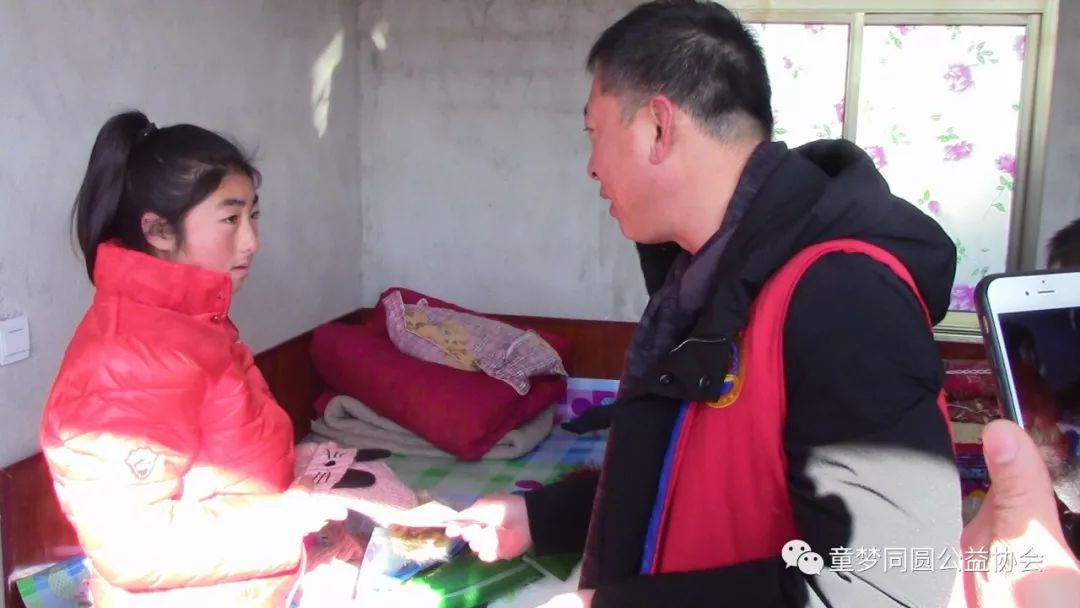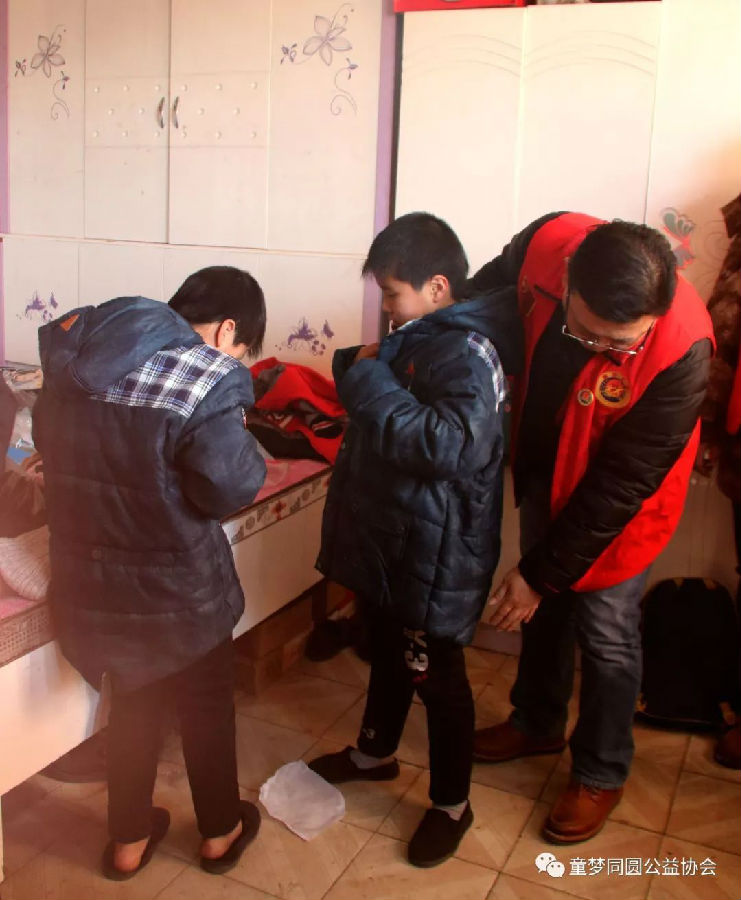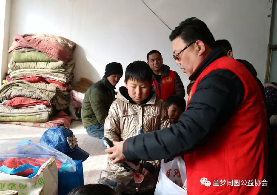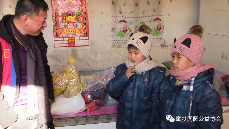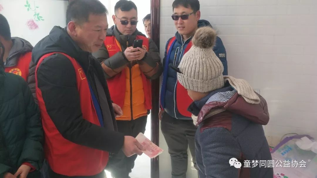 2018年1月12日8:00时,在鞍山市童梦同圆公益协会第三分会会长林景阳、副会长谭昕的带领下,童梦同圆三分会会员一行二十余人到岫岩县药山镇朱家堡村慰问9名贫困学生家庭,并给予每名孩子200元新年慰问金,并送去米、面、油、衣物等生活必需品,价值近7500元。