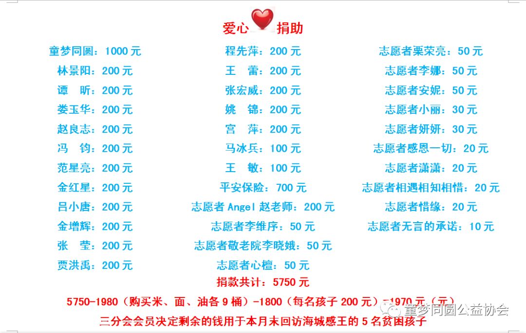 感谢各位会员、爱心人士的大爱付出