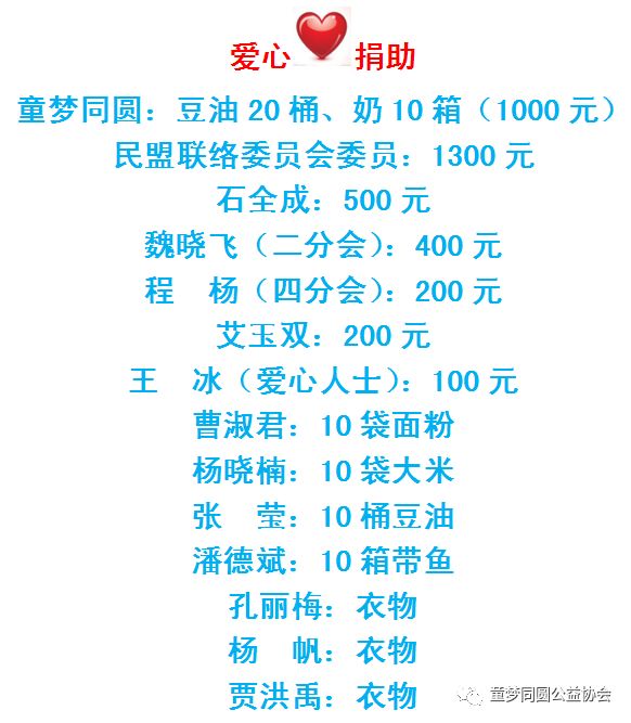 感谢各位会员、爱心人士对本次活动的爱心付出