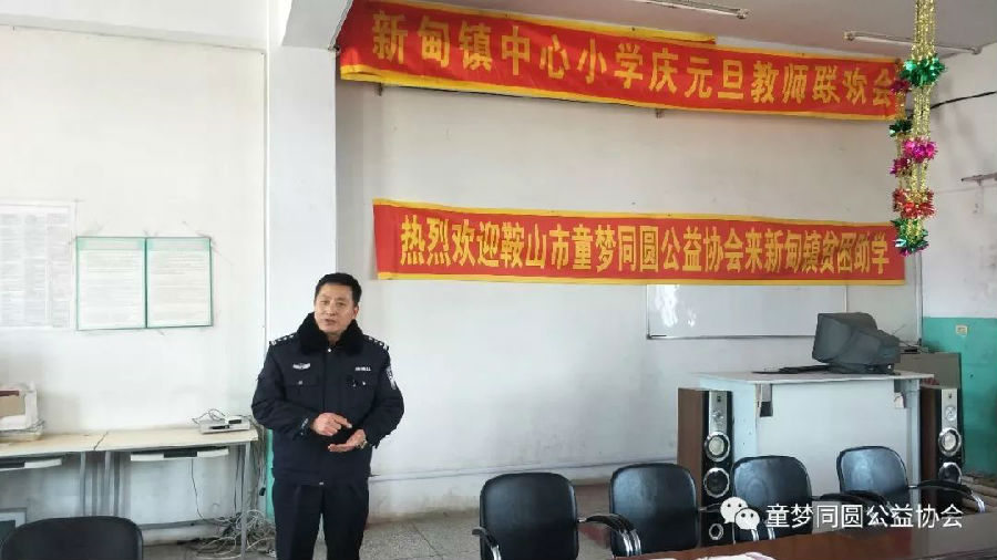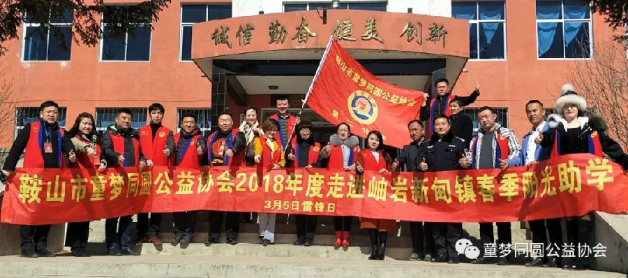 2018年3月5日,正值雷锋纪念日,在鞍山市童梦同圆公益协会名誉会长祝恩霜、第二分会会长(协会发展会长)董一峰、第二分会常务副会长魏晓飞、第二分会副会长苏兴龙的带领下,童梦同圆第二分会会员及协会监事会成员贾洪禹一行20余人到岫岩新甸镇中心校开展2018年度春季阳光助学活动。