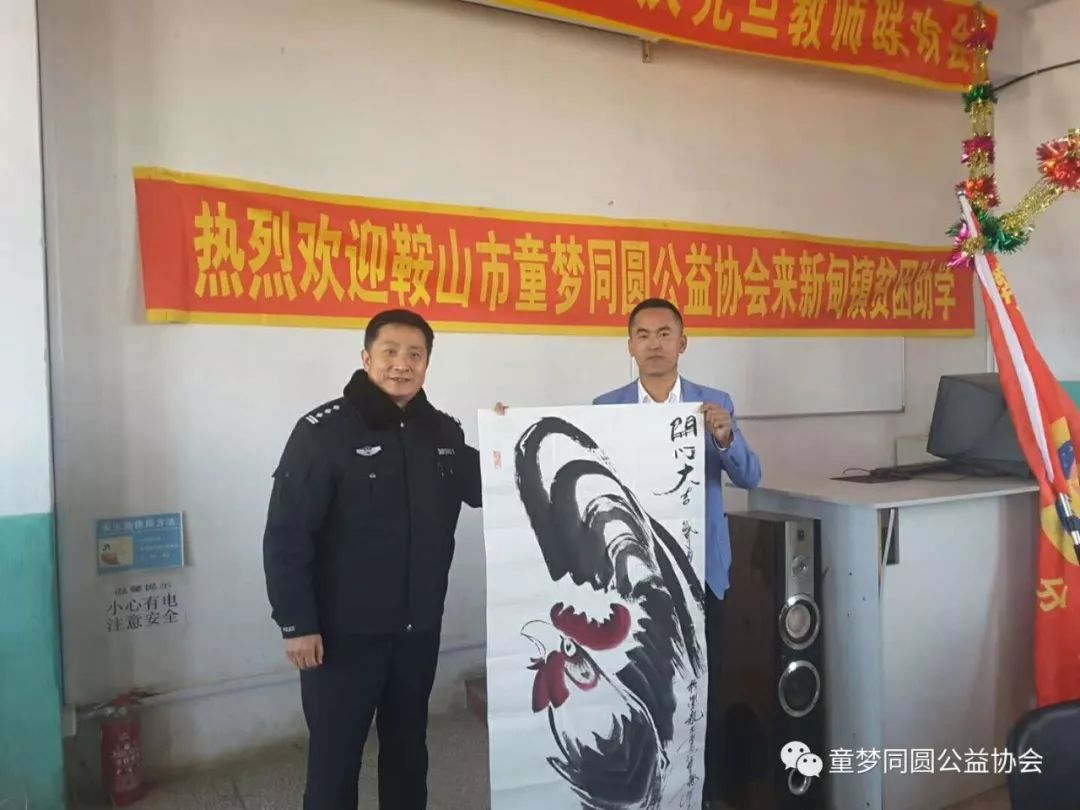 此次活动由第二分会常务副会长魏晓飞主持。首先由名誉会长祝恩霜进行发言并为受助的孩子们送上新年礼物——自己亲笔画的国画册页;之后由第二分会会长董一峰为10名受助孩子捐助阳光助学基金,为每名孩子捐款1200元阳光助学基金,共计12000元。第二分会会长董一峰将12000元阳光助学基金转交给新甸小学校长,此项阳光助学基金由学校统一管理。