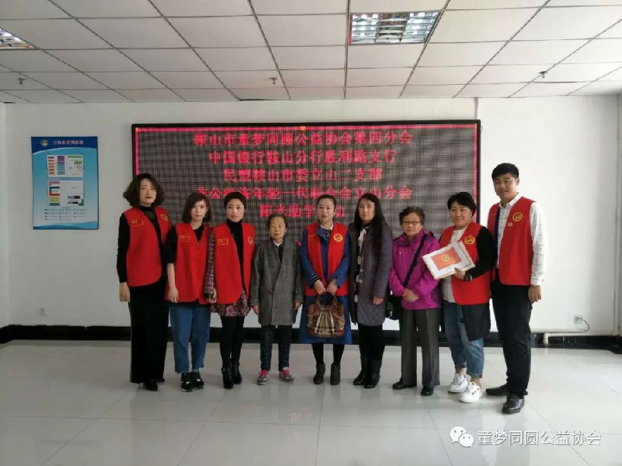鞍山市童梦同圆公益协会第四分会、中国银行鞍山分行胜利路支行、民盟鞍山市委立山二支部、非公经济年轻一代联合会立山分会阳光助学活动