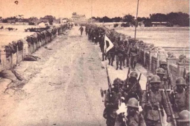 (中国军队撤退后,日军通过卢沟桥)