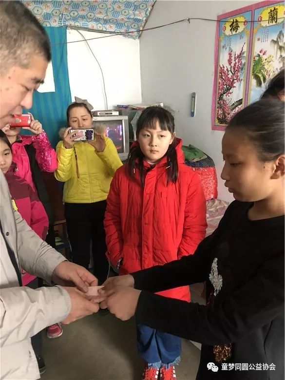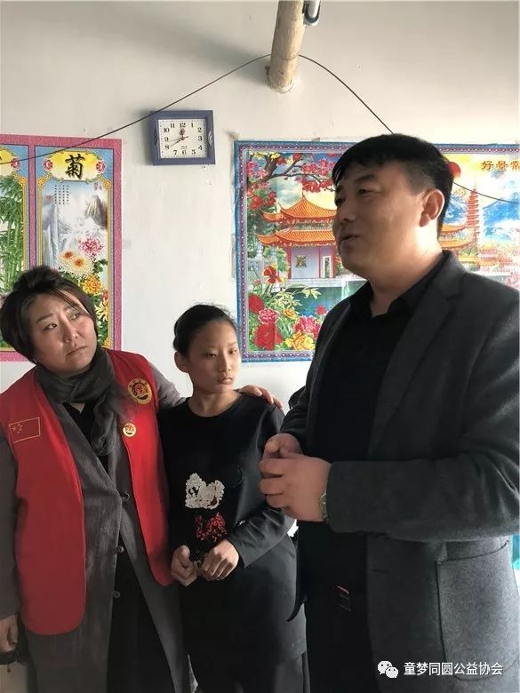 2019年3月10日,鞍山市童梦同圆公益协会四分会王开铭会长和会员代表及多名爱心人,到海城市耿庄镇大莫村调研,女孩尚君霞,今年18岁,因长期的营养不良导致现在身高只有145厘米,体重35公斤,爸爸8年前车祸去世,母亲5年前轻生去世,目前在姥姥家生活,仅有的妹妹在奶奶家生活。姥姥和姥爷已经七十九岁,姥爷患脑血栓瘫痪在床,生活条件很差。调研后,四分会进行捐助,王开铭会长将善款交到女孩手中。