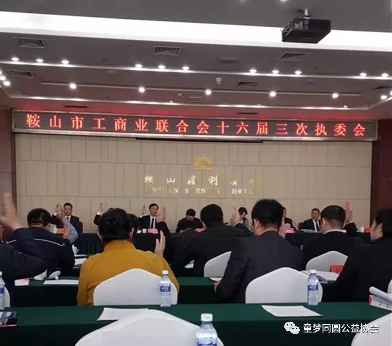 鞍山市童梦同圆公益协会应邀参加了此次会议。会长董俊丰、秘书长石全成等代表协会出席了此次会议。会议开始,首先由李荣刚代表执行委员会向大会作工作报告。李荣刚首先从四个方面对2018年的工作做了深刻的回顾即1、坚持政治引领,坚定理想信念。2、充分履职尽责,积极建言献策。3、优化服务职能,助力民企发展。4、着眼固本强基,加强组织建设。其次,又从“贯彻落实习近平总书记在辽宁考察和深入推进东北振兴座谈会上的重要讲话精神,按照市委要求,进一步解放思想、更新观念,大力弘扬企业家精神,重燃创业激情,重塑发展信心,加快转型升级,实现高质量发展,以改革创新精神推动非公有制经济统战工作发展新局面。”为总体思路,对2019年工作任务进行了总结。另外,为了全面提升政策预见力、战略谋划力、经营决策力、资源整合力、快速应变力、卓越领导力,推动我市民营经济加快转型升级、实现高质量发展,市工商联还与相关部门签订了战略合作协议。