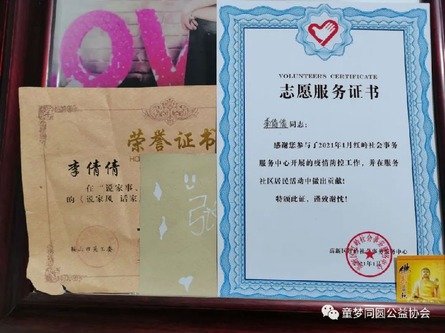 受助学生李倩倩参与疫情工作的志愿服务证书